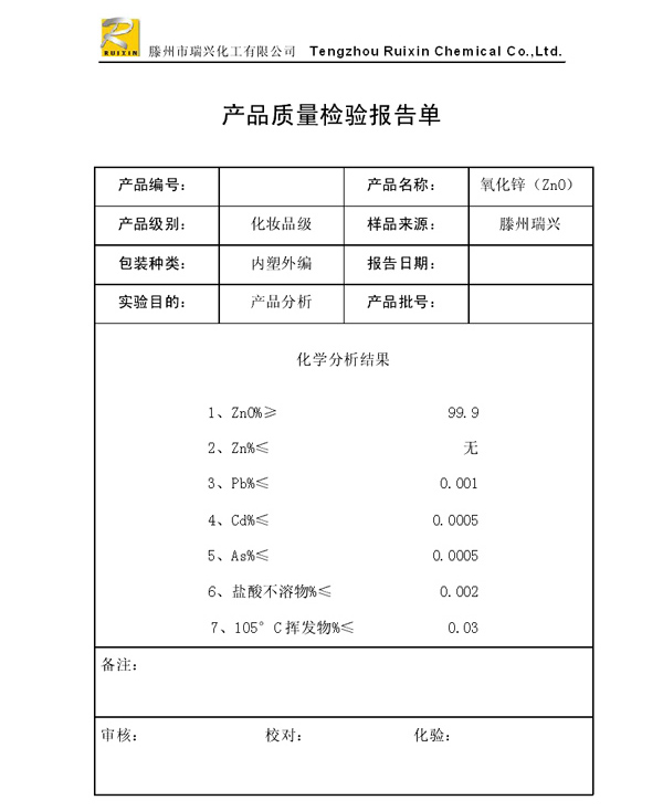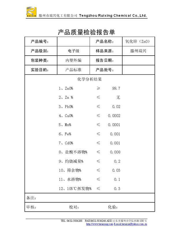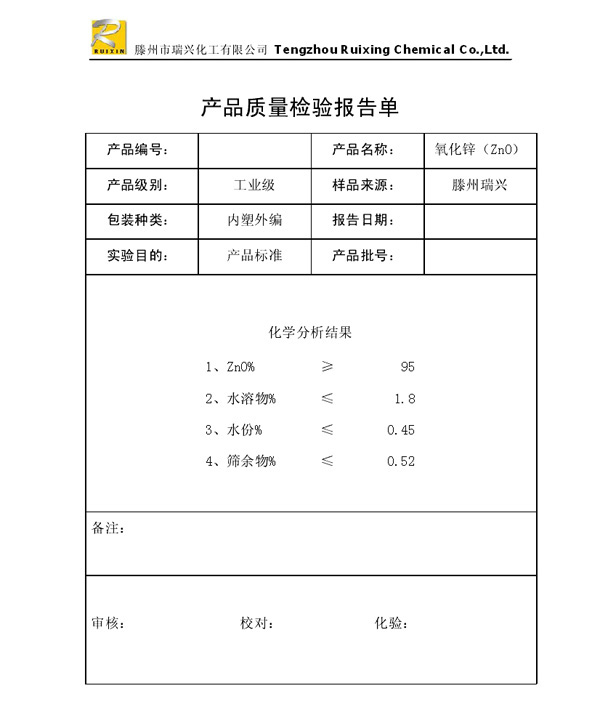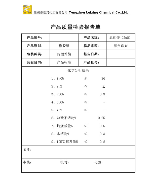 瑞興化工有限公司是生產(chǎn)氧化鋅的重點(diǎn)企業(yè),于2008年通過(guò)ISO9001:2008質(zhì)量管理體系認(rèn)證。“瑞興”牌氧化鋅在國(guó)內(nèi)擁有較大穩(wěn)定的市場(chǎng),并遠(yuǎn)銷(xiāo)東南亞、中東、中南美等國(guó)家和地區(qū),在國(guó)內(nèi)外享有較高聲譽(yù)。